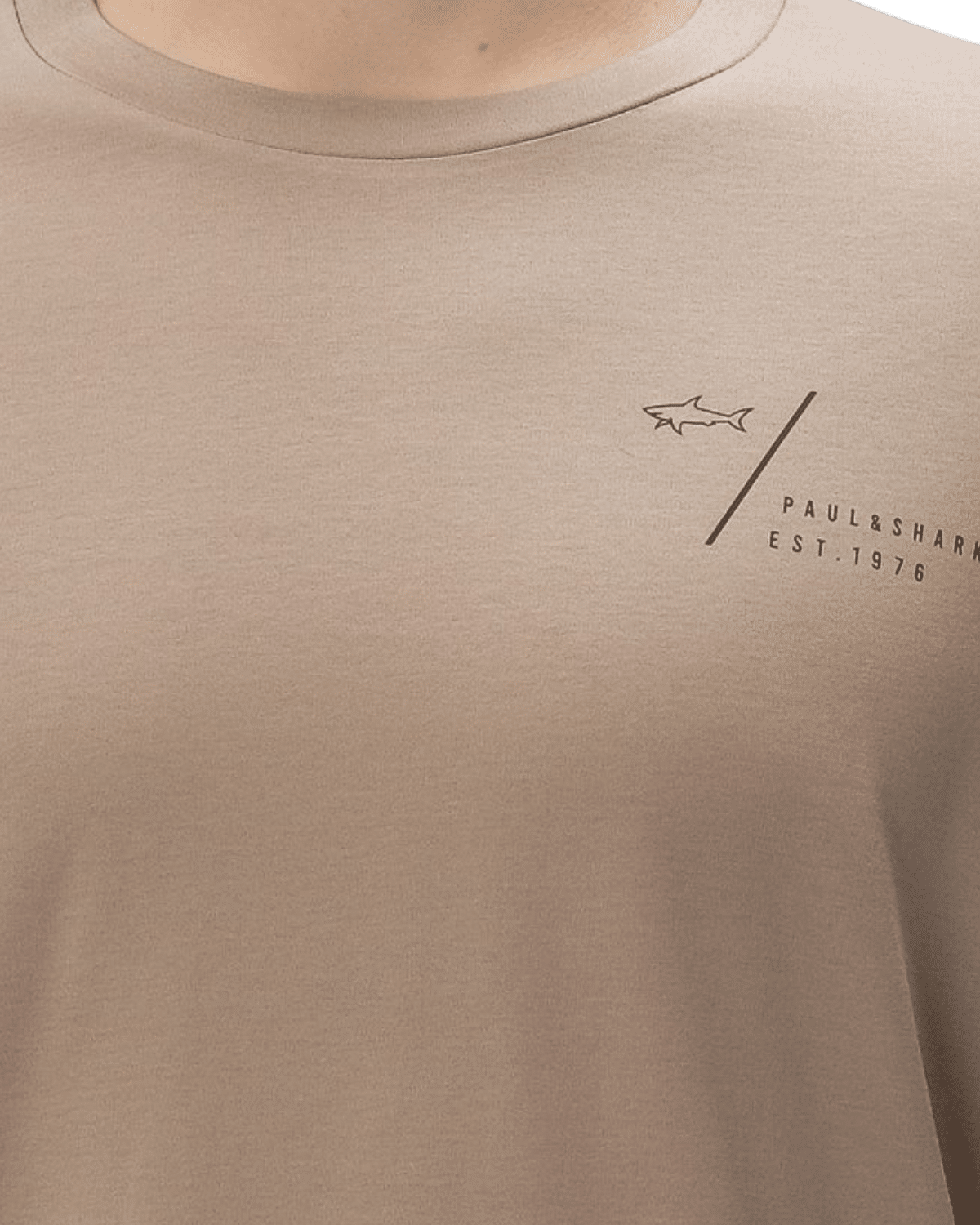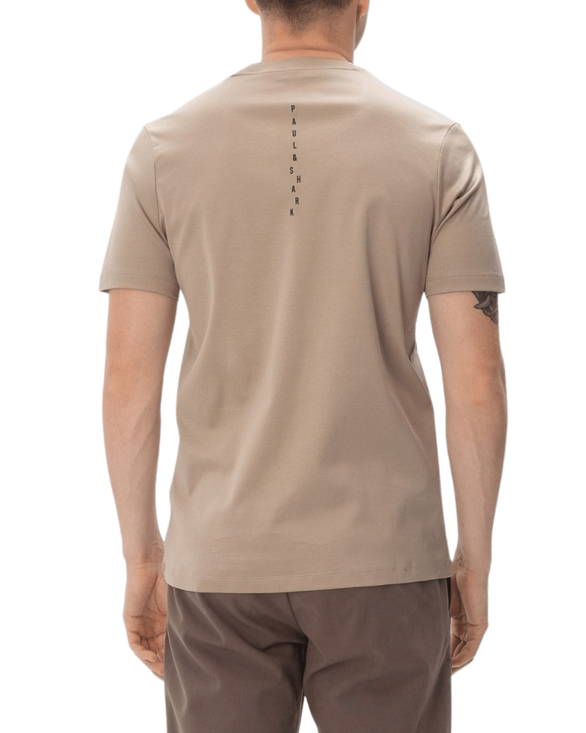 החולצה בגזרה רגילה עם שרוולים קצרים וצווארון עגול. בגב החולצה משולב הדפס ייחודי שמעניק לה מראה מודרני ובולט.