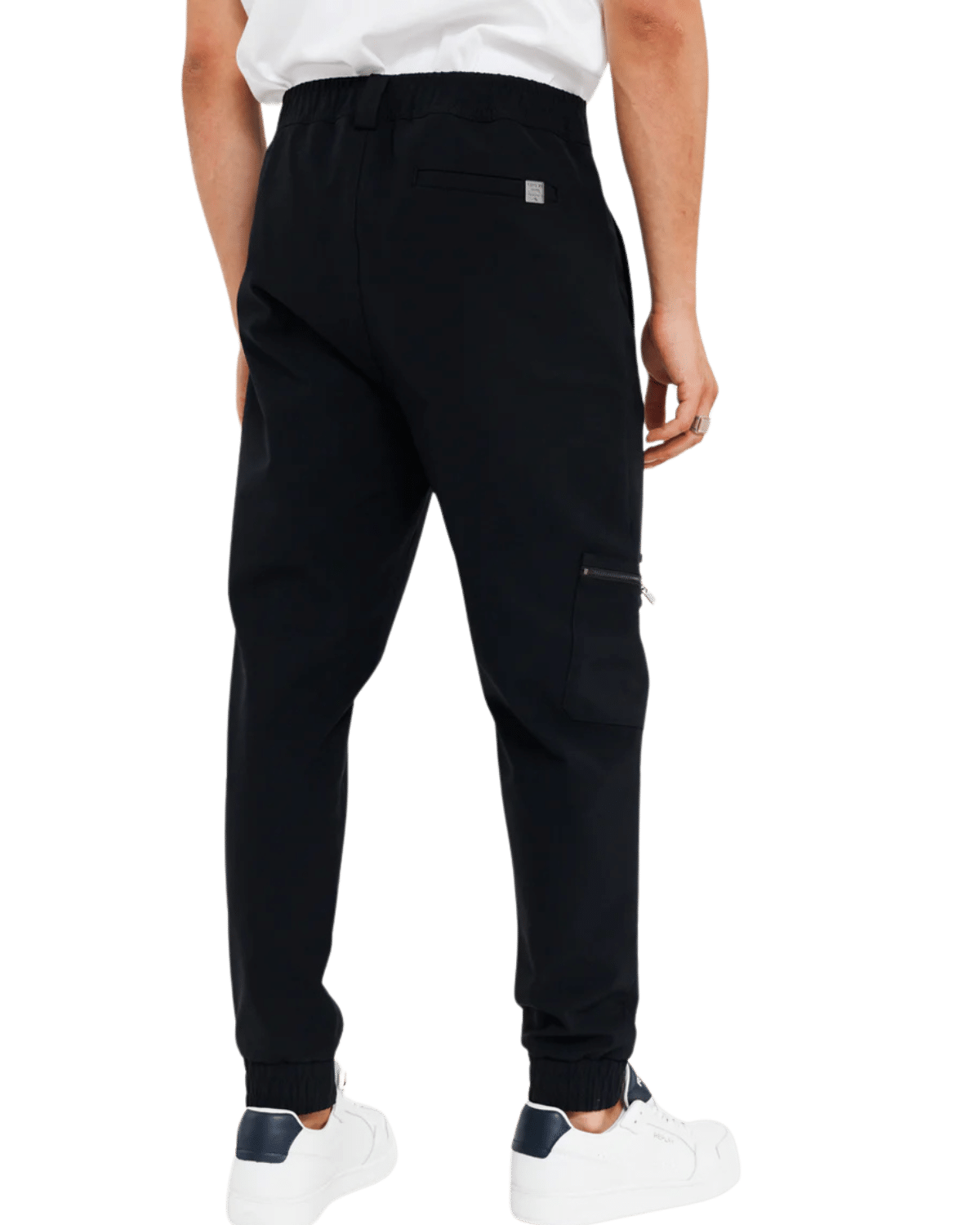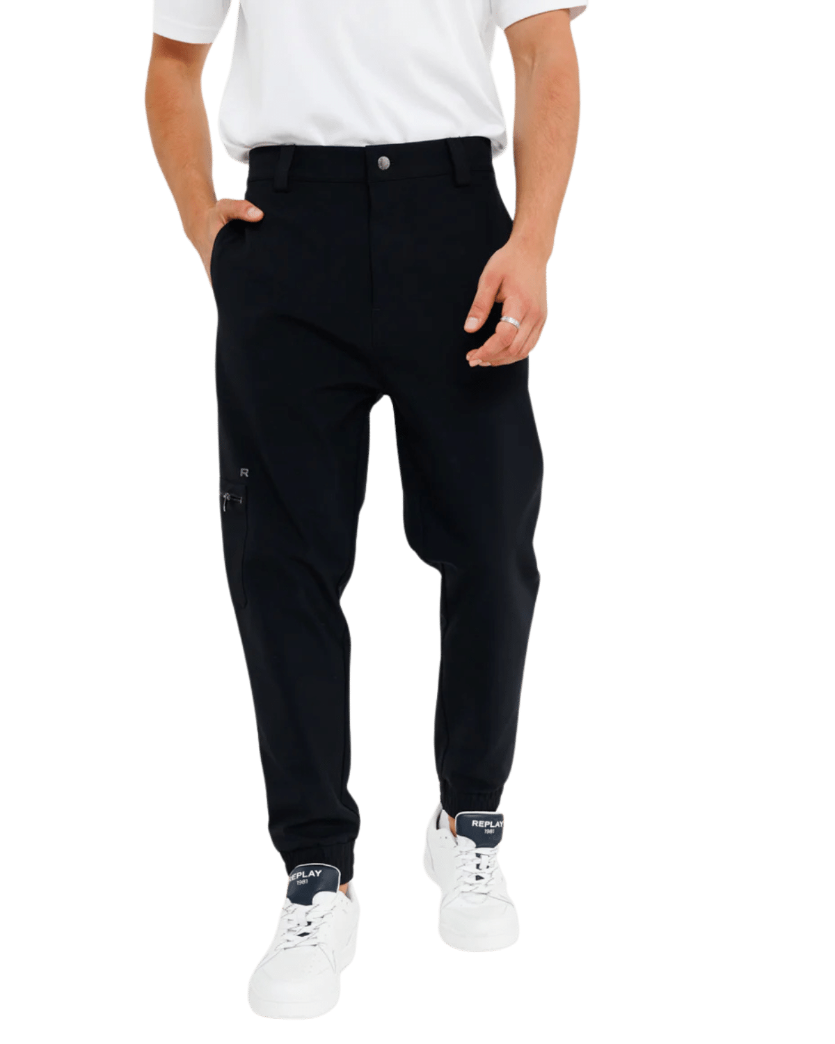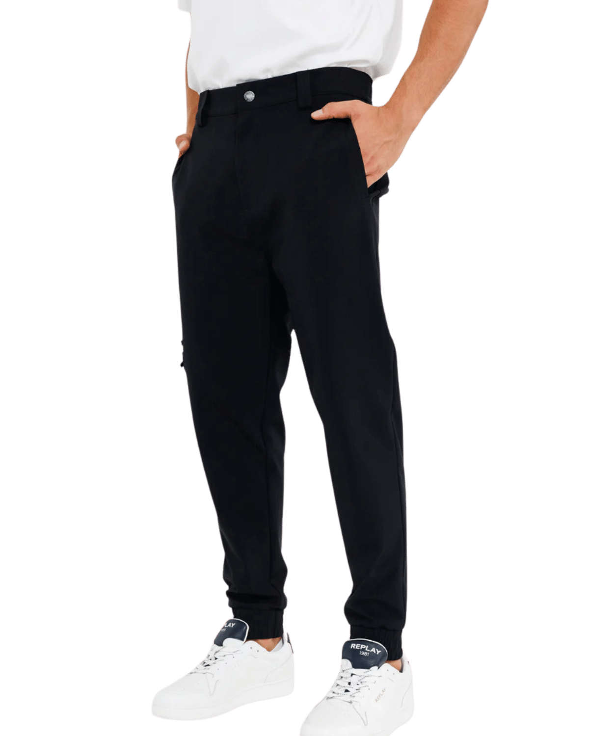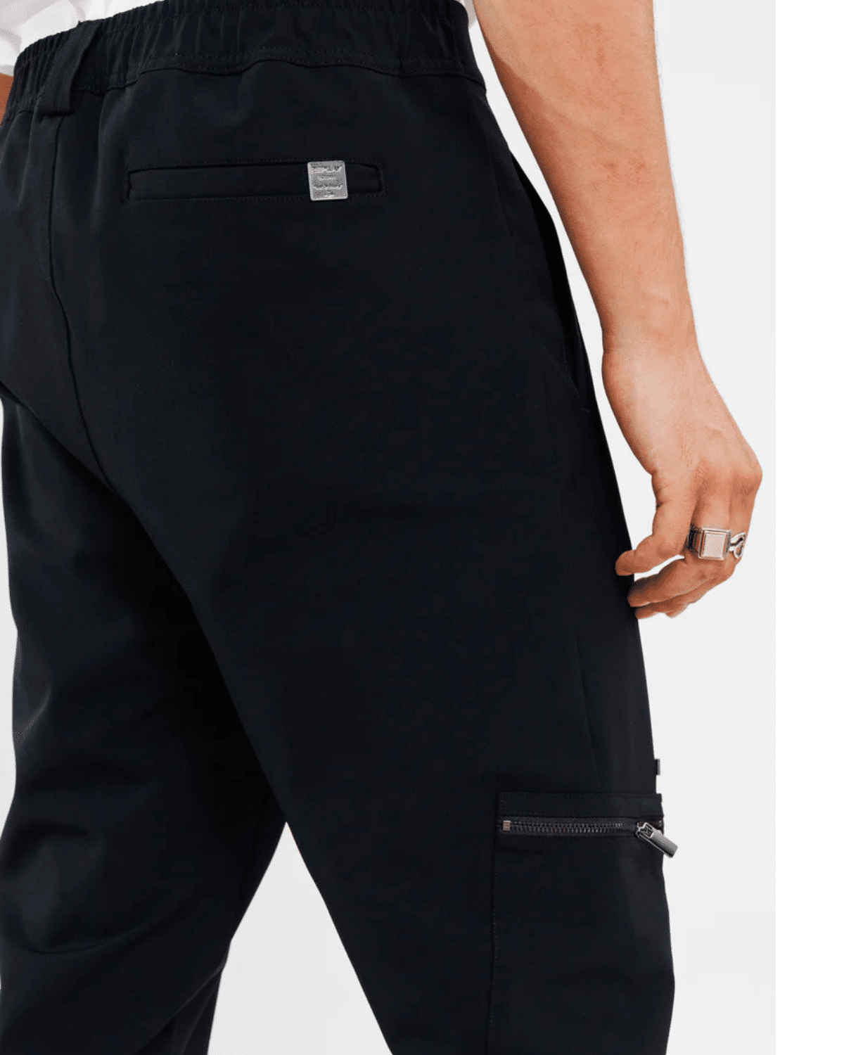 מכנסי גברים ארוכים בעיצוב אלגנטי עם כיס צד ורוכסן לנוחות ונגישות.
