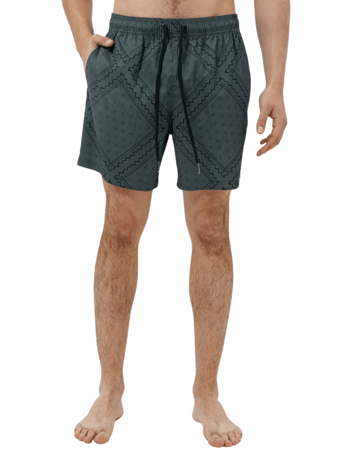 שורט ים לגברים בצבע אפור כהה עם דפוס שחור ייחודי, בעיצוב שמשלב קלילות קייצית עם ניחוח איטלקי יוקרתי.