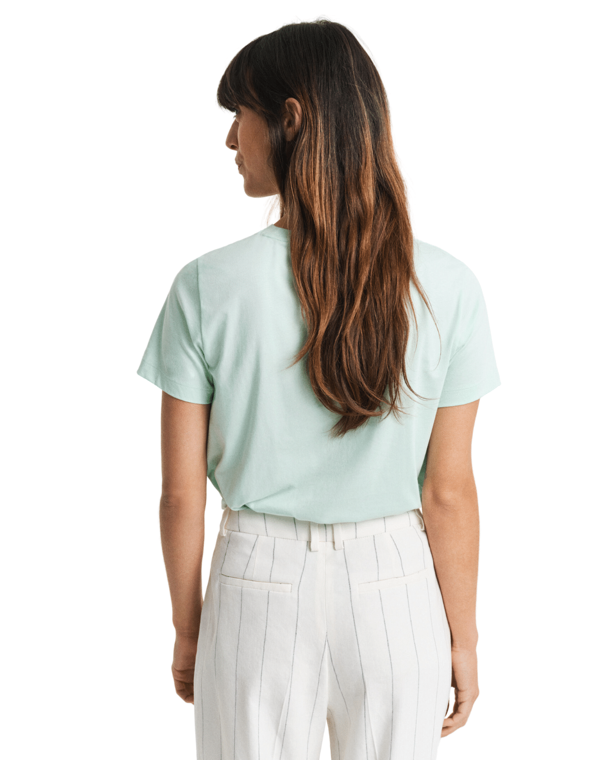 טי-שירט נשית בגוון ירוק פסטל רך ומעודן, המעניק מראה רענן וקליל המתאים לכל עונה.