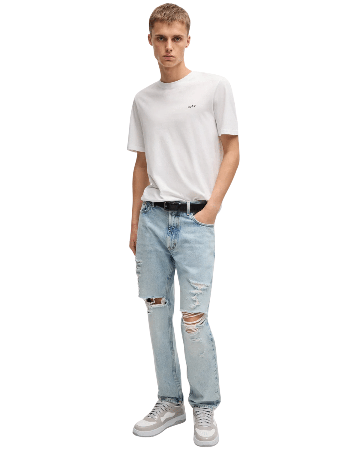 בחזית מופיע לוגו BOSS מודפס בגודל קומפקטי, שמעניק לחולצה טאץ' עדין של מותג מבלי להשתלט על המראה.
