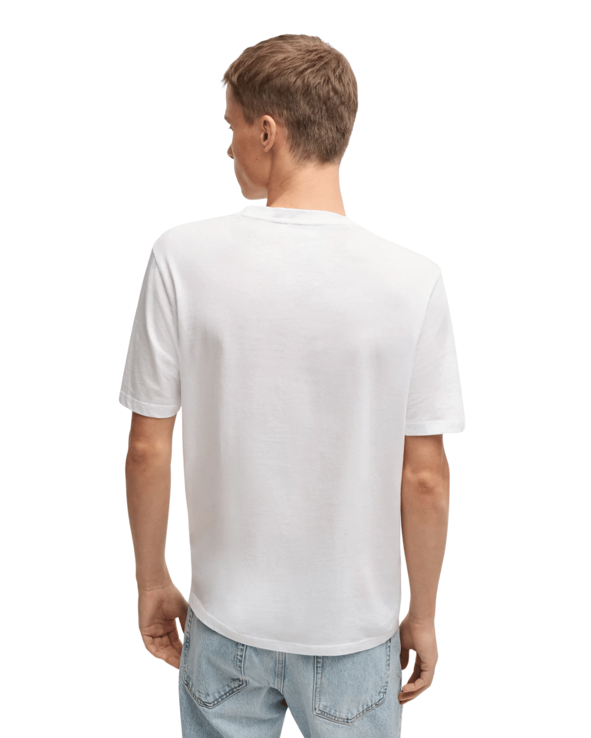 טי שירט גברים אלגנטית בגוון לבן חלק, בעיצוב מינימליסטי ויוקרתי. הדגם מאופיין בגזרת Regular נוחה, שרוולים קצרים וצווארון עגול.