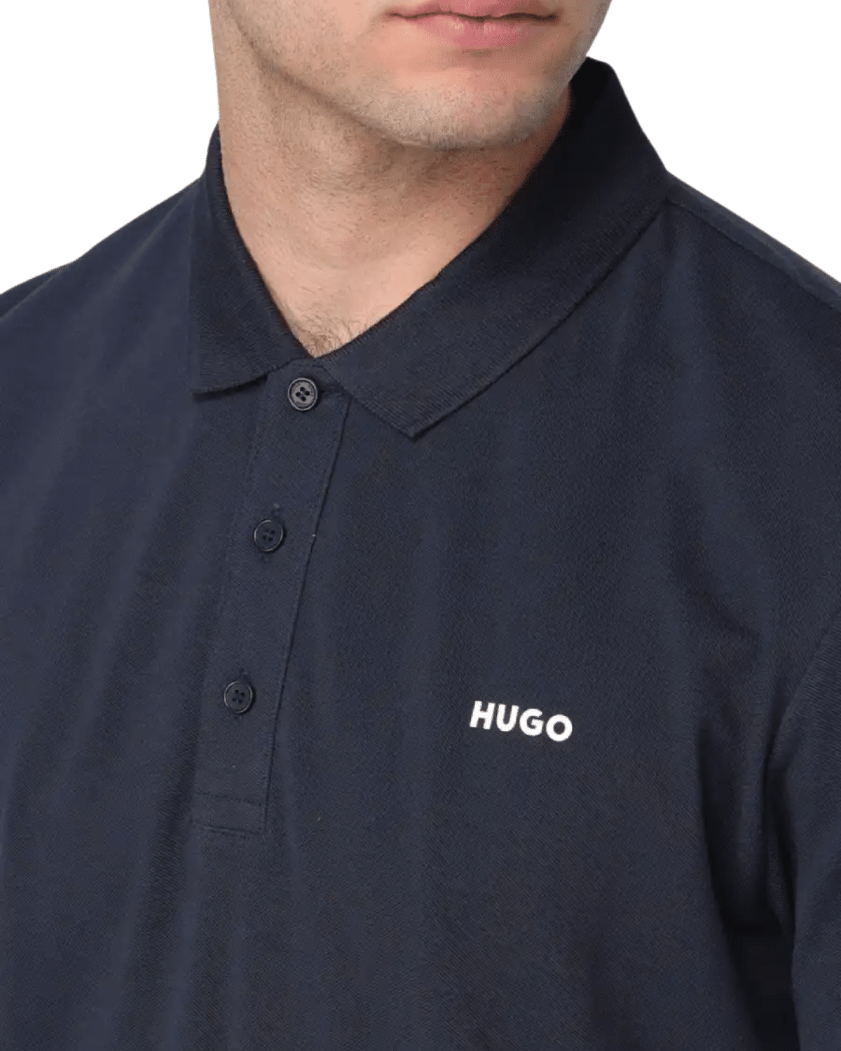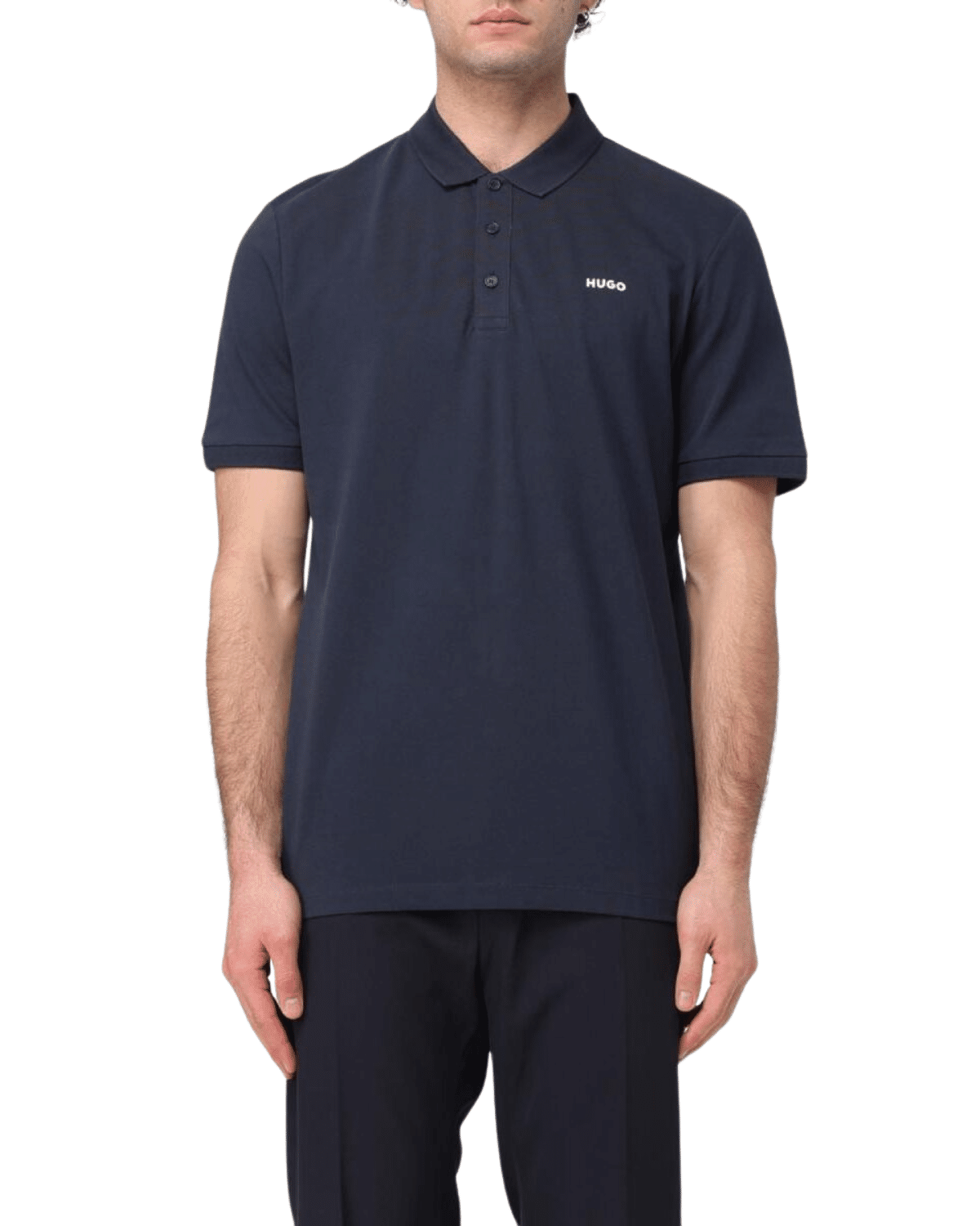 חולצת הפולו הקצרה מבית HUGO בצבע כחול נייבי עם לוגו לבן מציעה שילוב של עיצוב מודרני עם נוחות מרבית, המתאימה למגוון רחב של סגנונות לבוש.