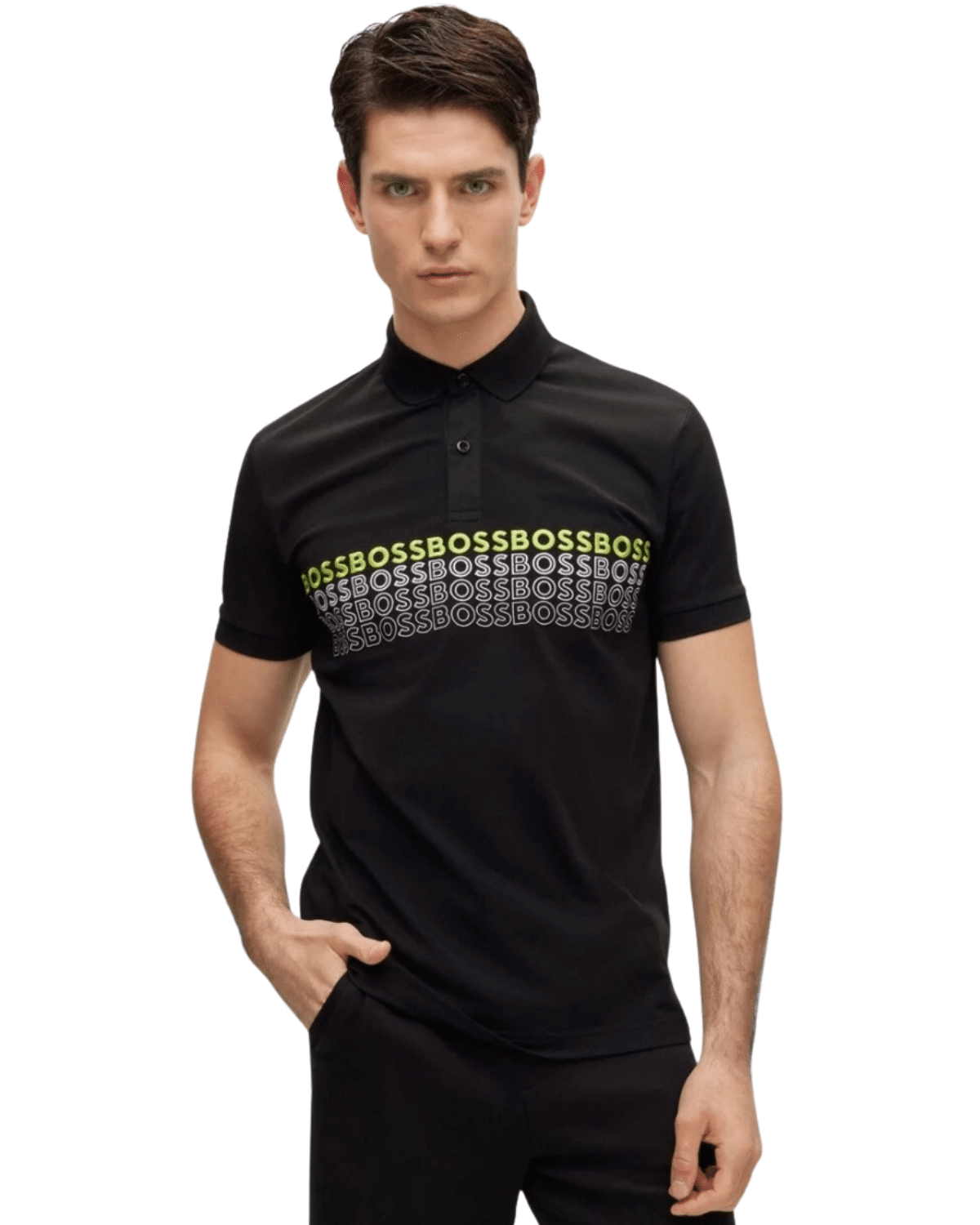 טי שירט שחורה בעיצוב יוקרתי מבית HUGO BOSS, המשלבת מראה נקי עם תחושת פרימיום גבוהה.