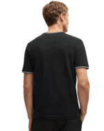 חולצת טי שירט שחורה לגברים עם עיצוב נקי ומוקפד, עשויה כותנה רכה ואיכותית למקסימום נוחות ותחושת פרימיום על הגוף.