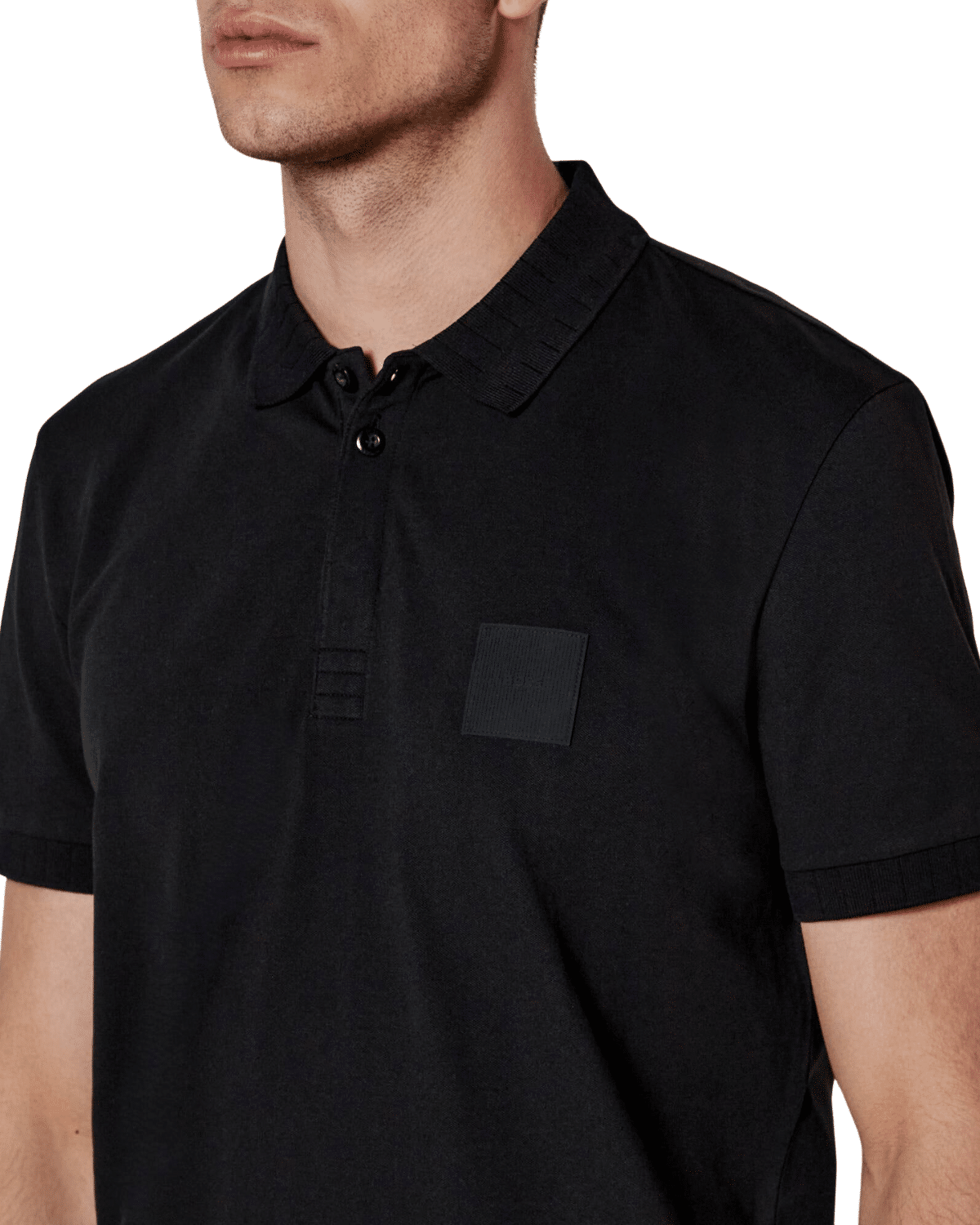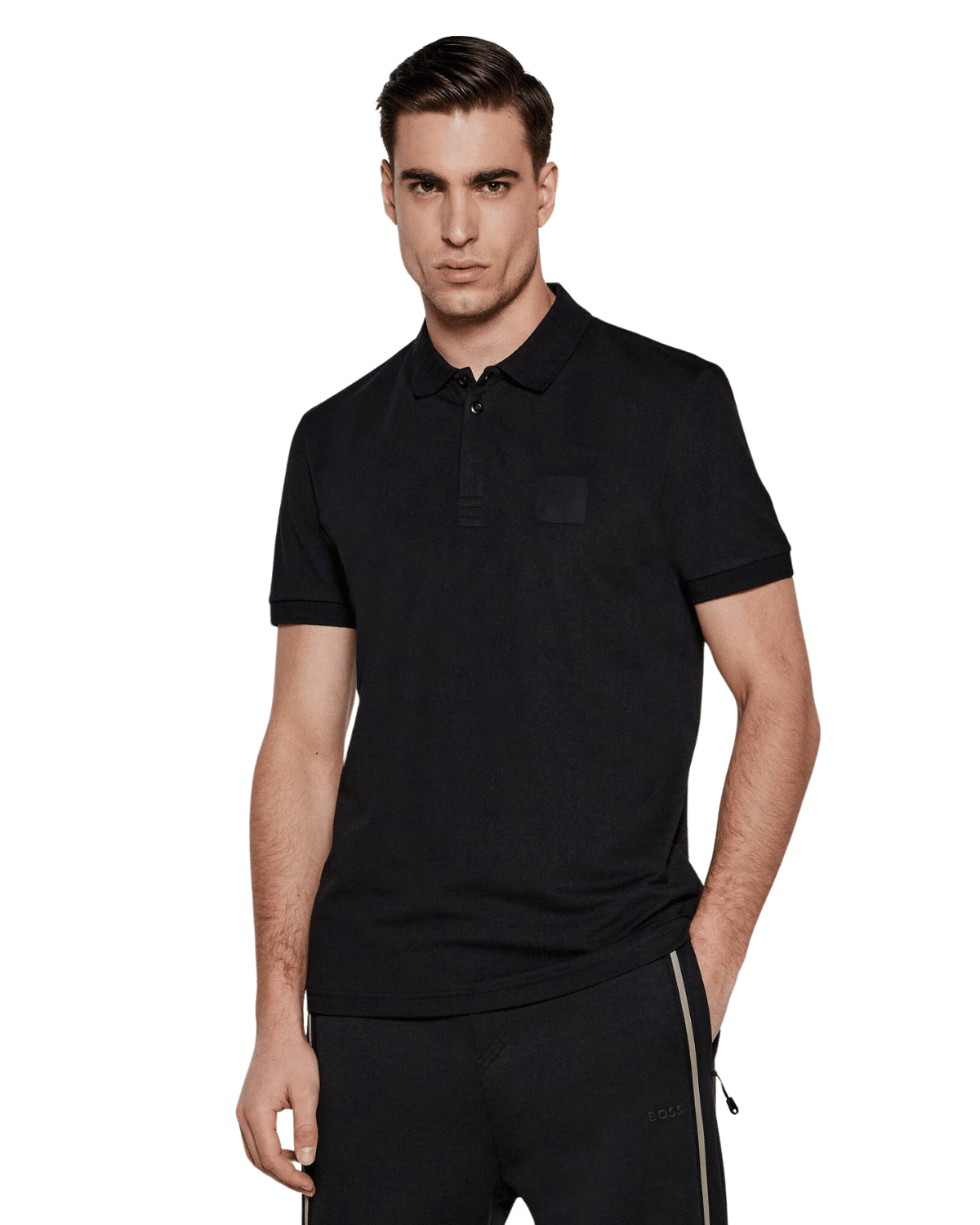 חולצת הפולו הקצרה מבית HUGO בצבע שחור עם תבליט לוגו מרובע  מציעה שילוב של עיצוב מודרני עם נוחות מרבית, המתאימה למגוון רחב של סגנונות לבוש.