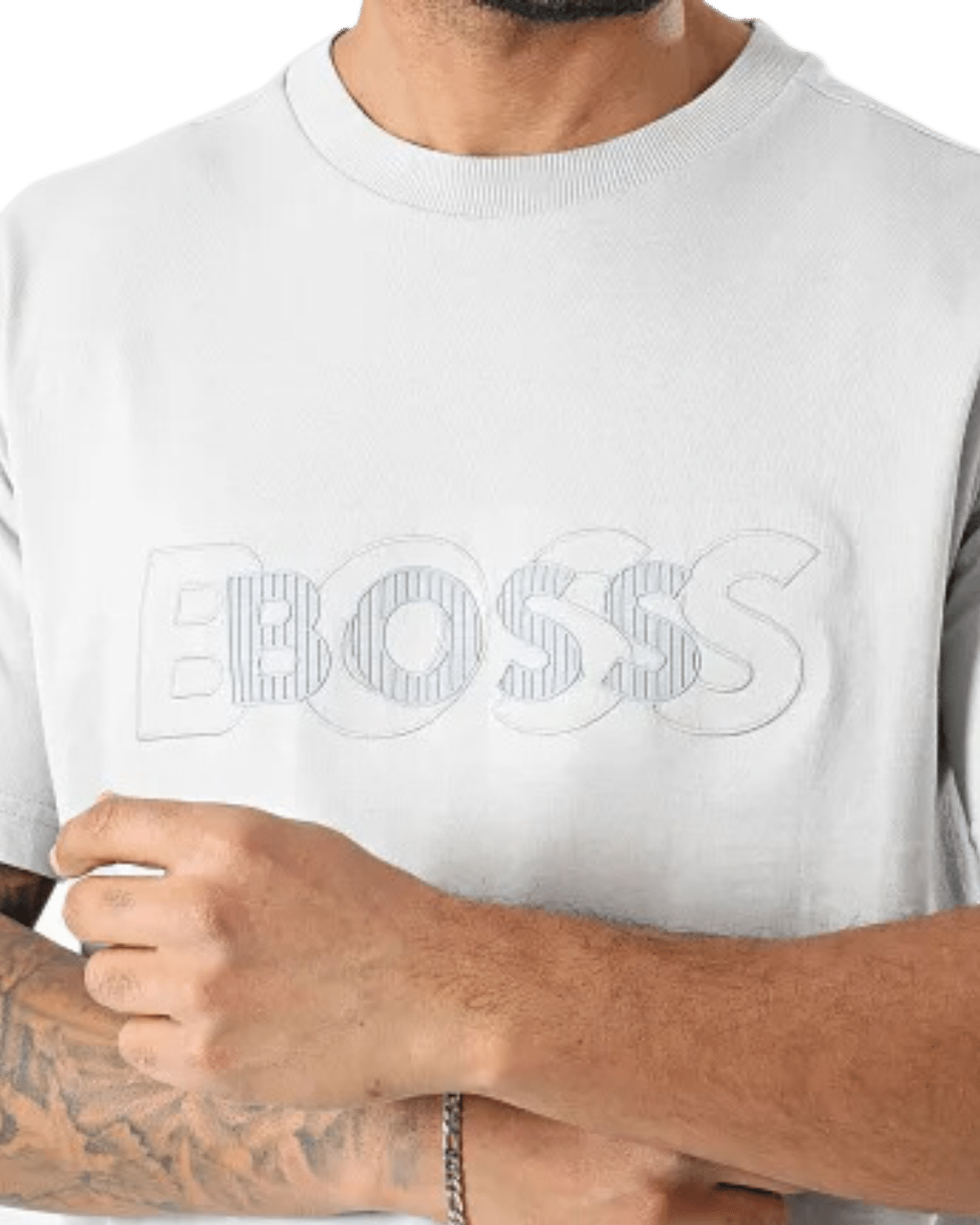 חולצת טי-שירט  קצרה לגברים מבית המותג היוקרתי הוגו בוס, בצבע לבן קלאסי.