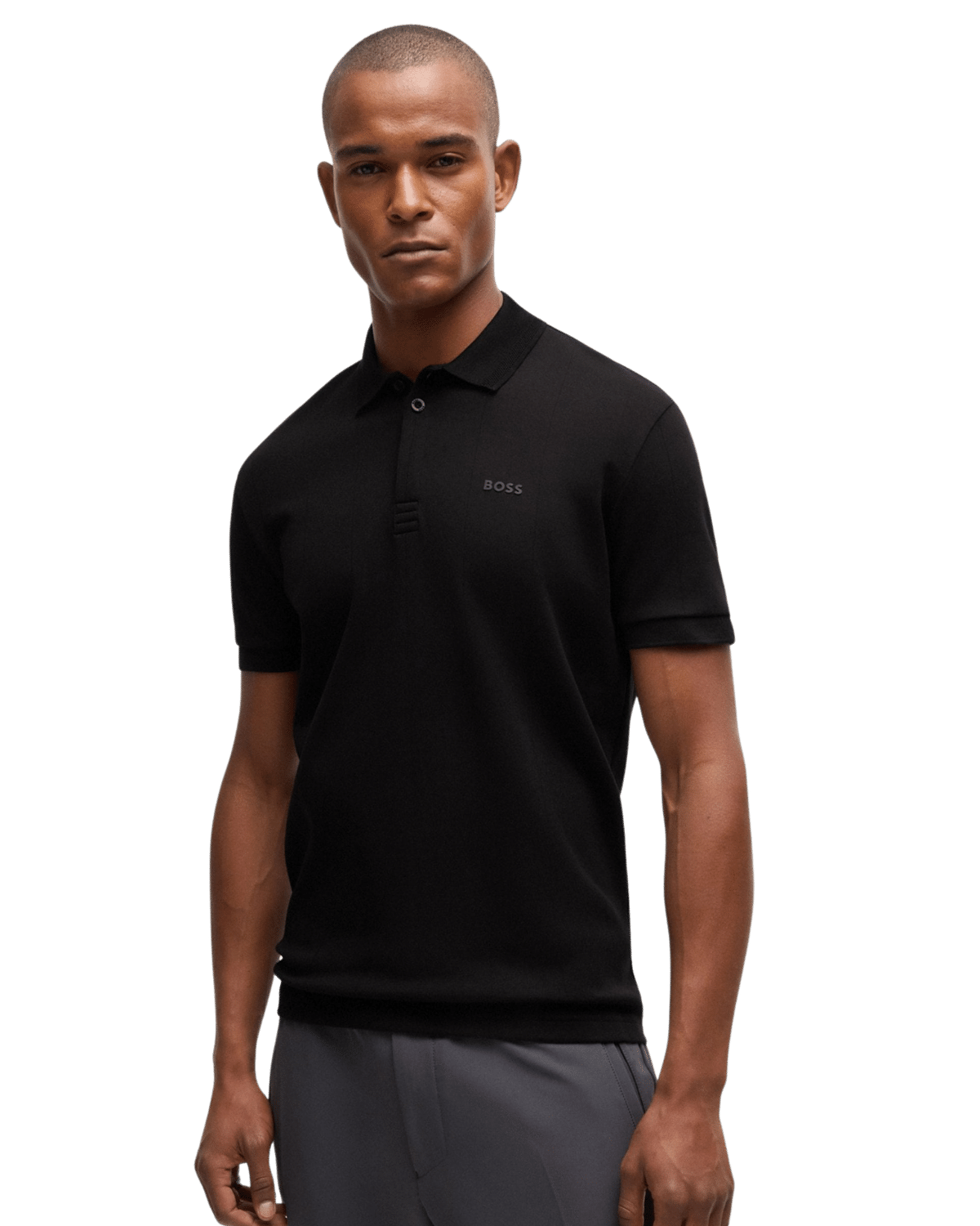 חולצת פולו קצרה לגברים, עשויה מכותנה איכותית בצבע שחור. החולצה מעוצבת בגזרה קלאסית עם צווארון פולו ושרוולים קצרים, ומספקת נוחות ואלגנטיות למראה יומיומי.