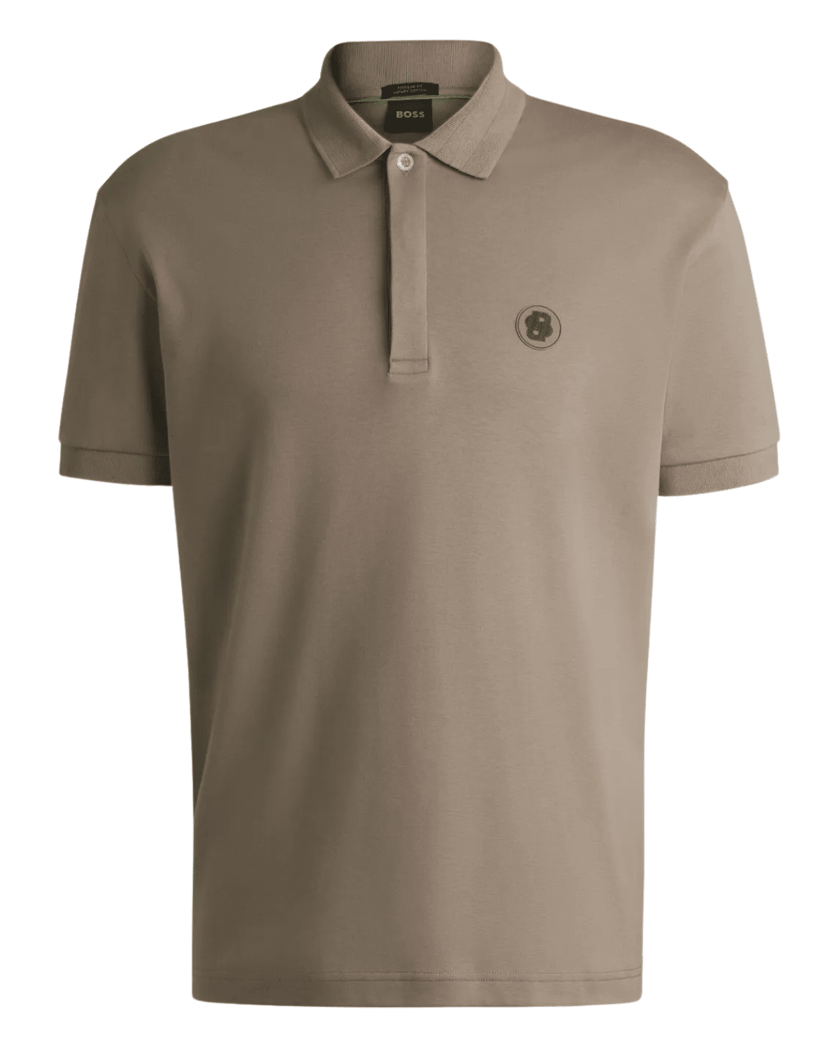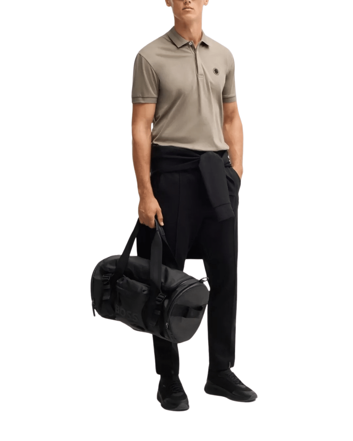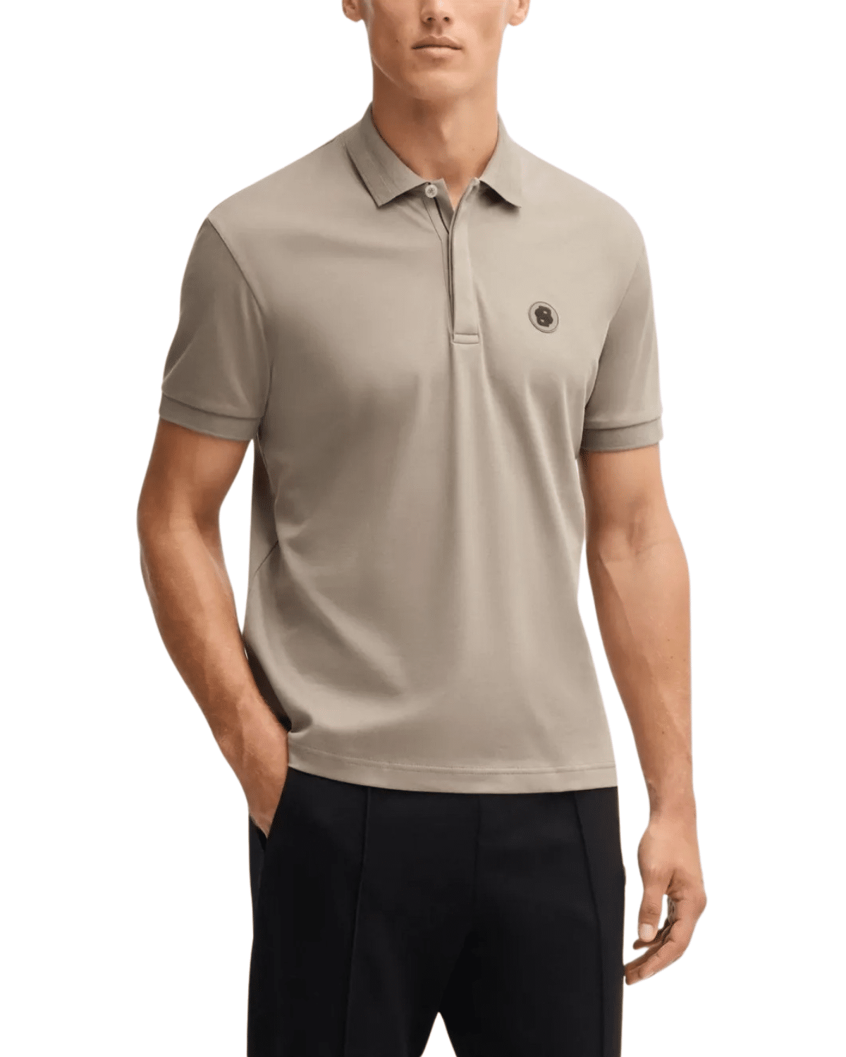 חולצת פולו אלגנטית עם לוגו רקום/מודפס, המשדרת סגנון יוקרתי ונוחות מרבית.