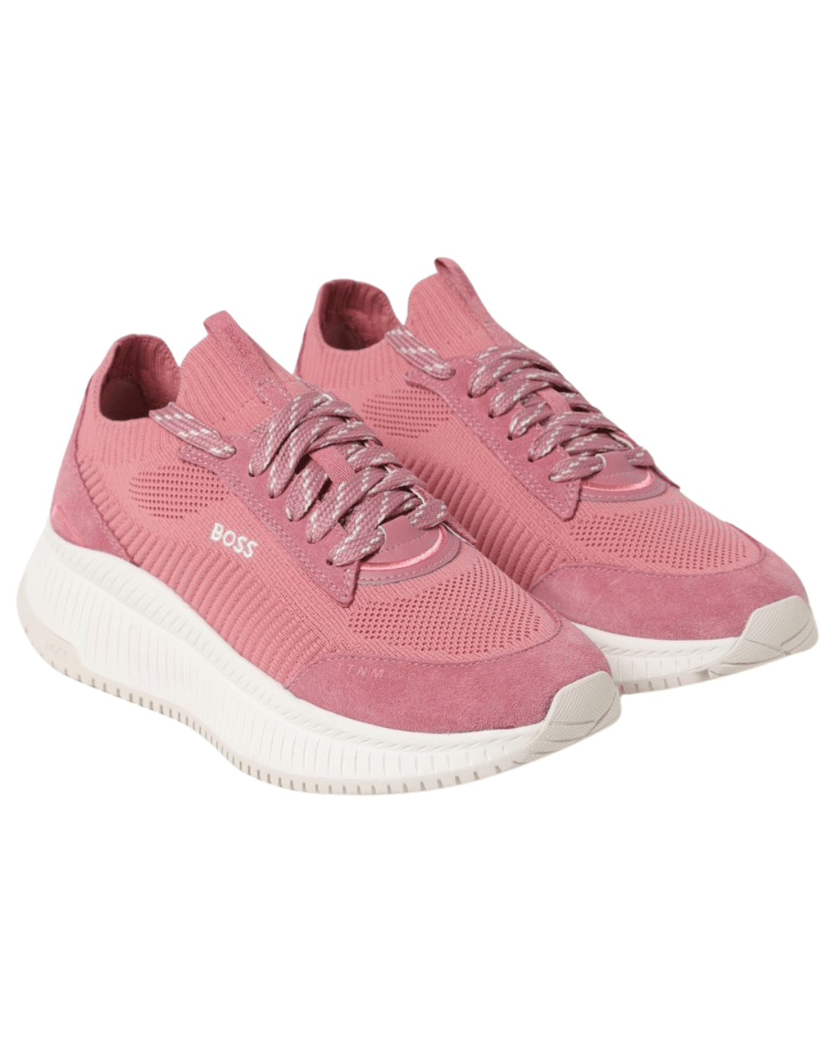 נעלי סניקרס לנשים בצבע לבן+ וורוד מבית הוגו בוס מציעות עיצוב מודרני ומינימליסטי בגוון לבן קלאסי.