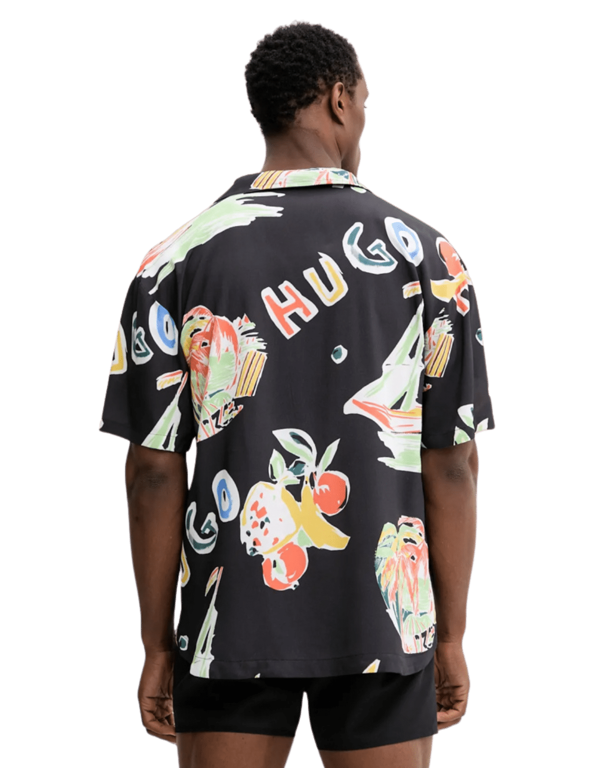 חולצת חוף שחורה בעיצוב מינימליסטי ונקי, המשלבת בין מראה קז'ואלי לניחוח יוקרתי.