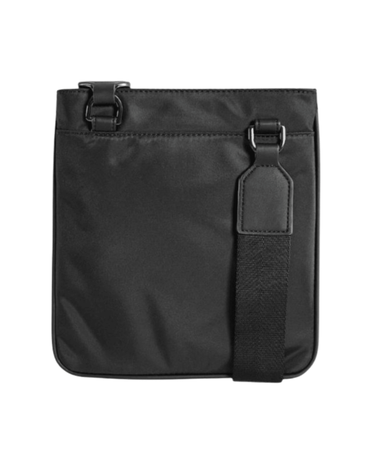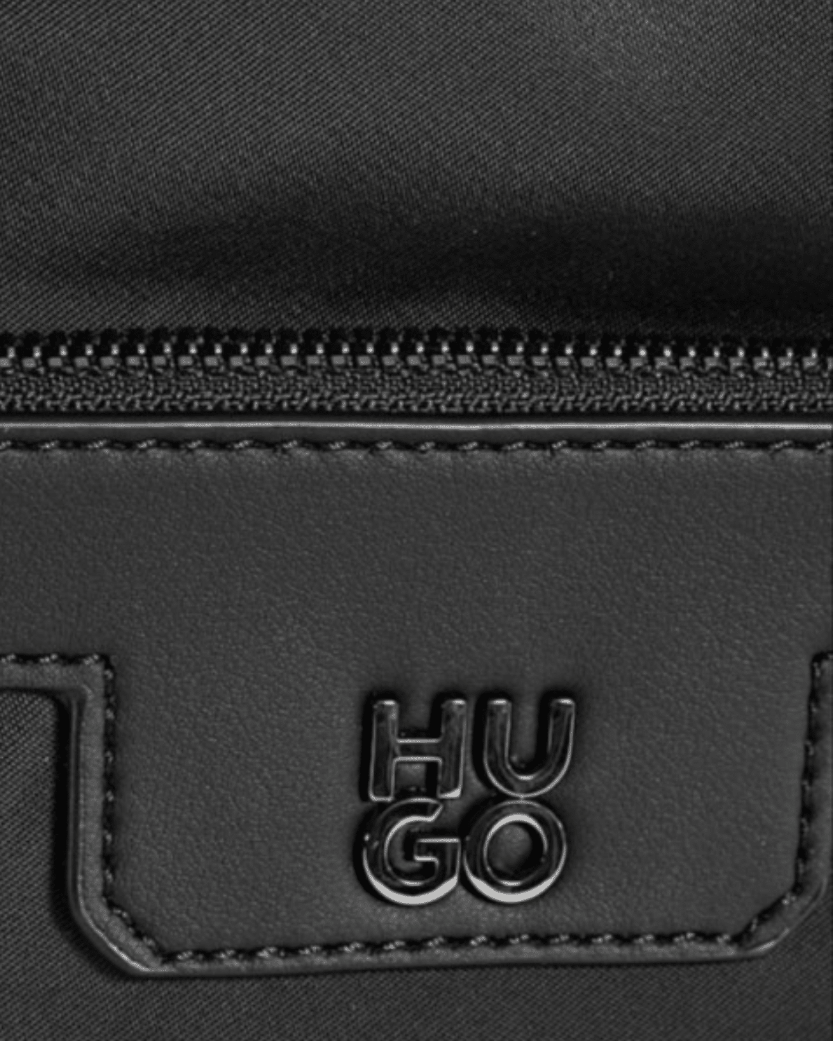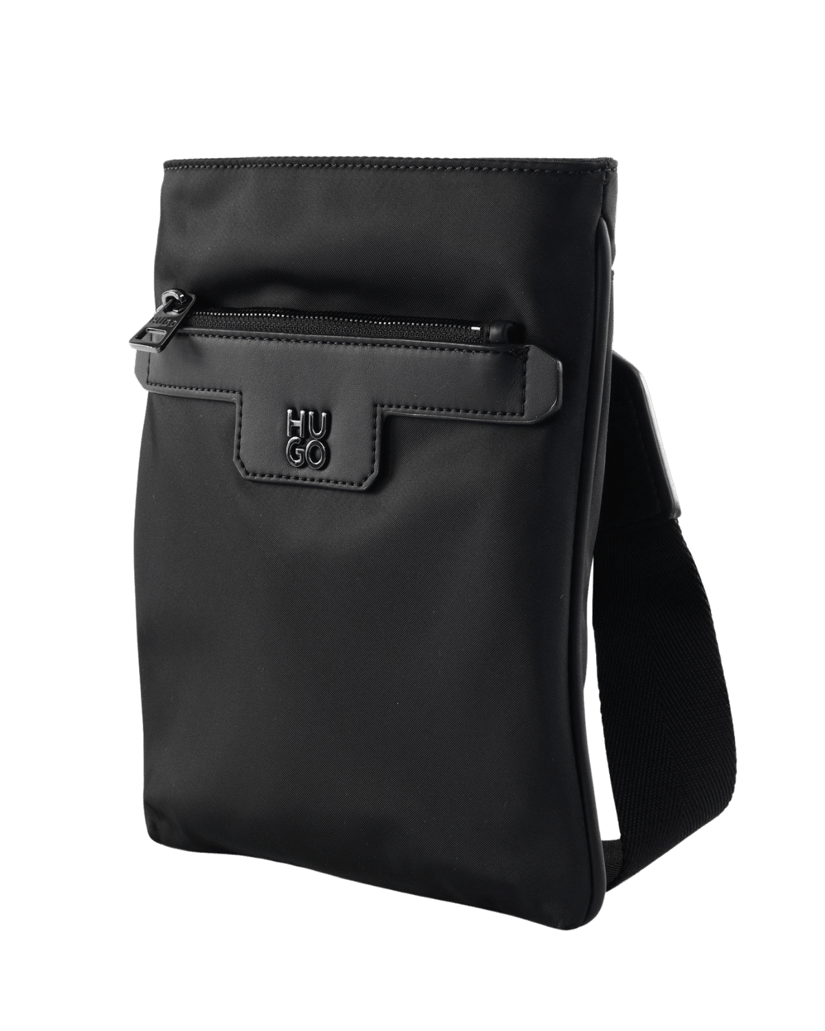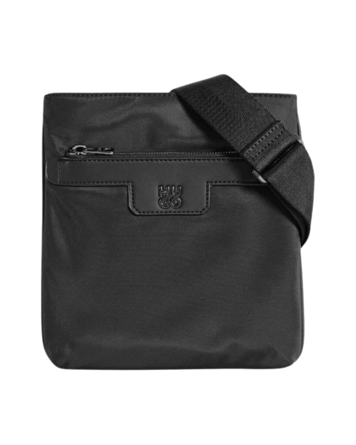 תיק צד קומפקטי ואלגנטי לגברים מבית HUGO, בעיצוב מודרני בצבע שחור חלק עם לוגו מובלט בחזית.