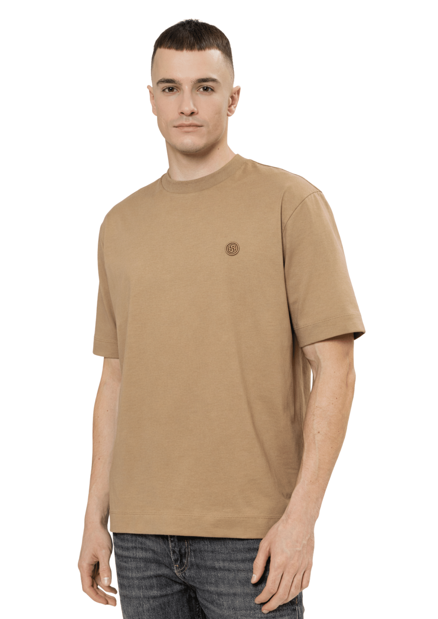 חולצת טי-שירט קצרה לגברים מבית HUGO BOSS בצבע חום קלאסי, שרוולים קצרים, פריט בסיסי יומיומי שמעניק מראה נקי ומעודן.