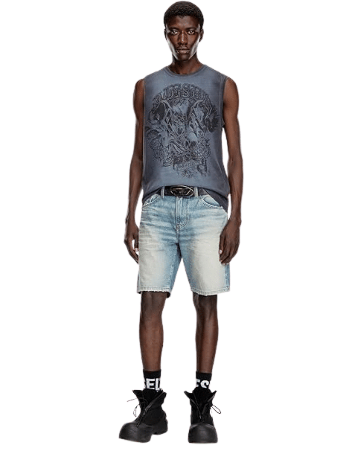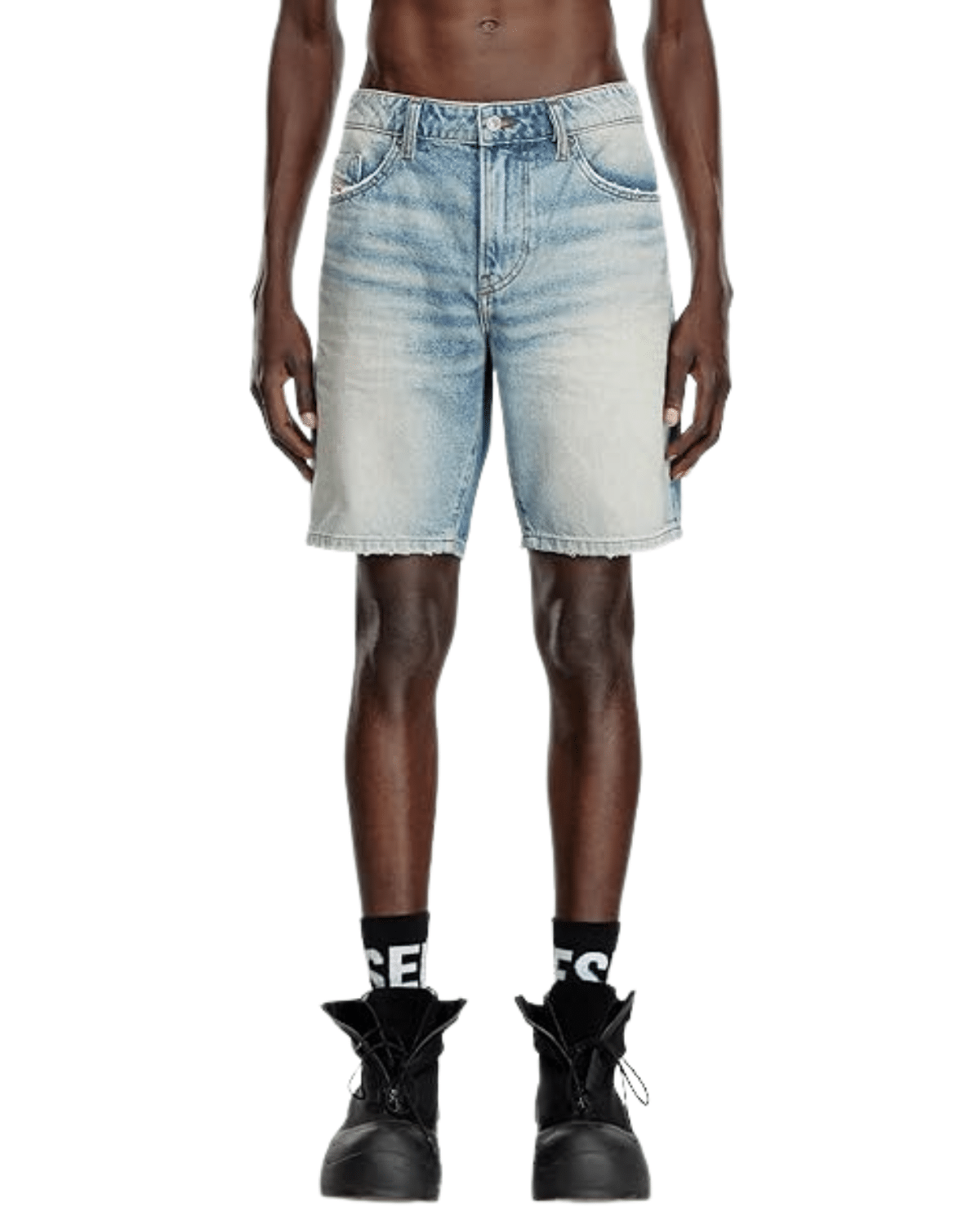 עשויים מבד דנים כותנה קשיח, בצבע כחול בינוני עם גימורי שחיקה וסיבוב טבעי (used look) שנותנים להם אופי רטרו-עכשווי.