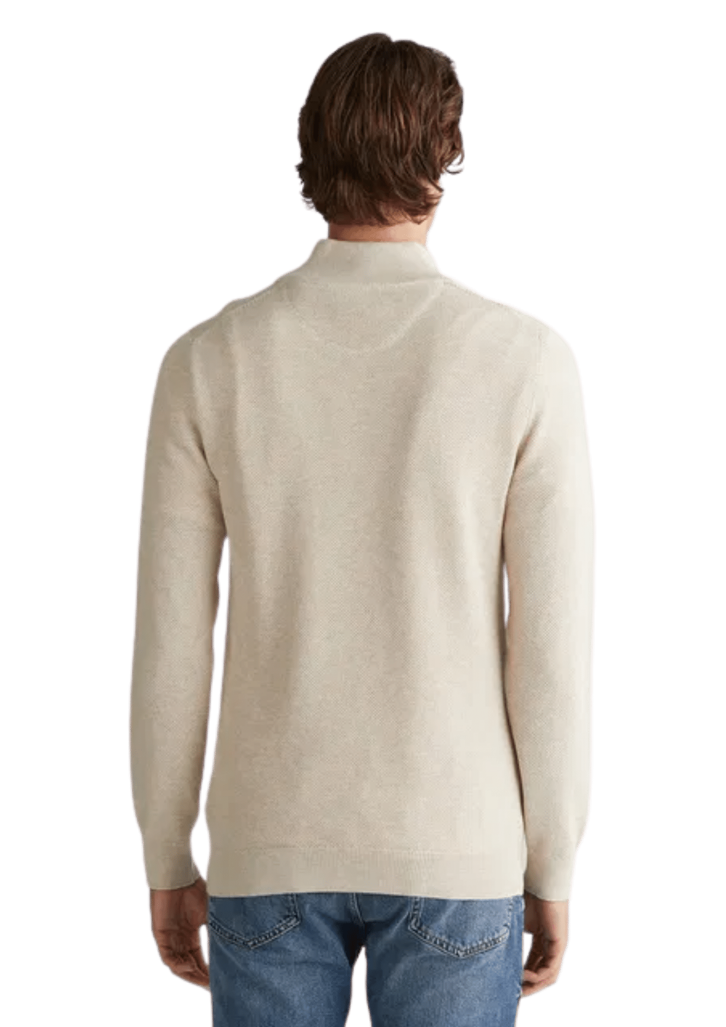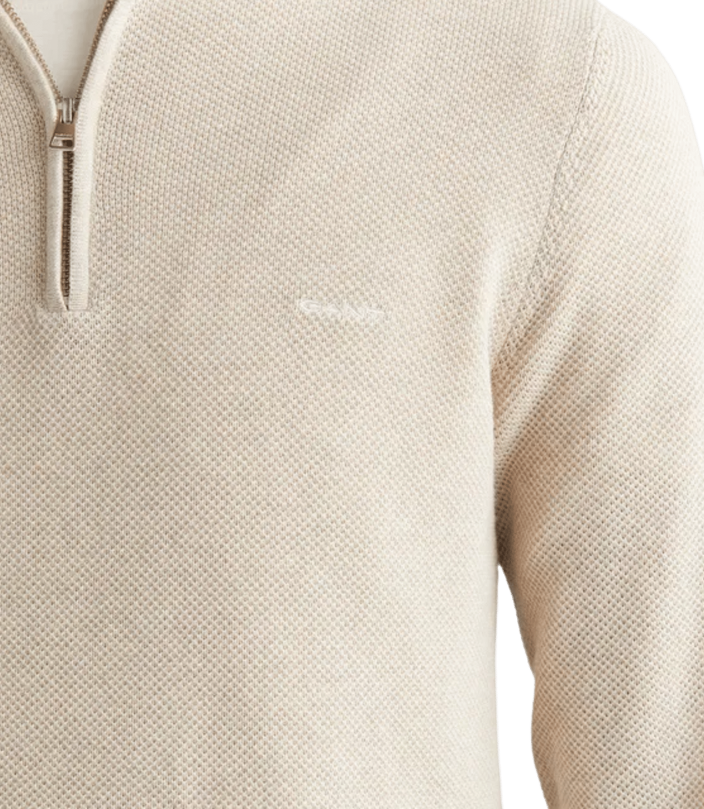 הסווטשירט כולל רוכסן חצי קדמי, צווארון גבוה, ולוגו רקום בחזה, המעניקים לו מראה אלגנטי ונעים.
