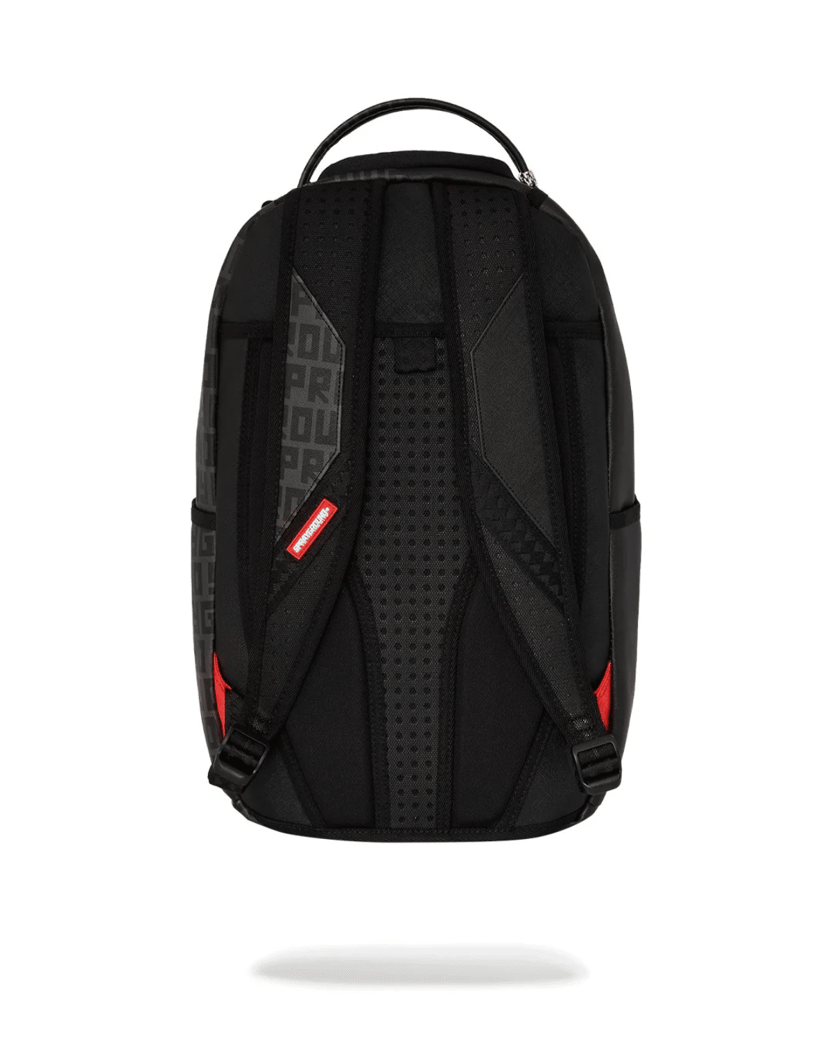 אבזור וגימורים: רוכסנים ומעברים מוזהבים עם סמל “Sprayground Authentic” מתכתי בגב התיק