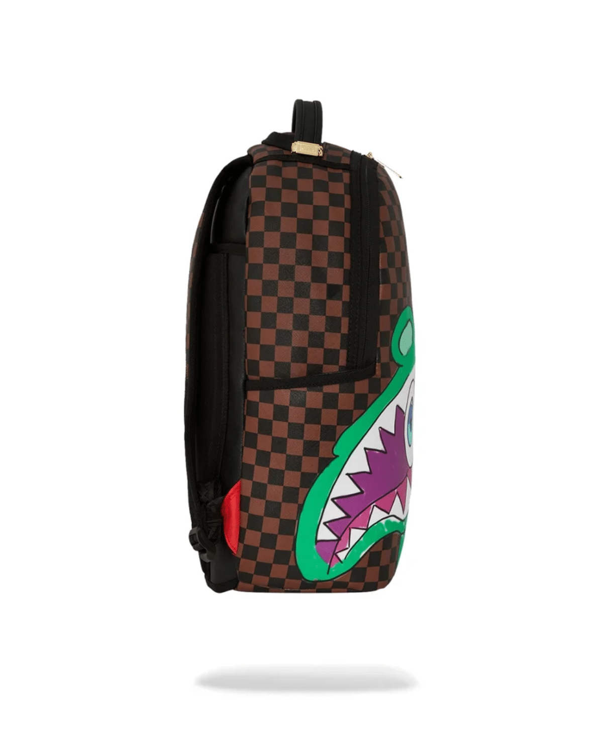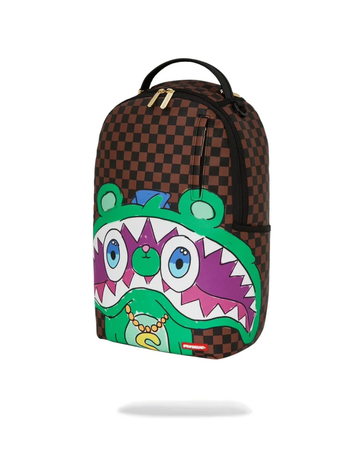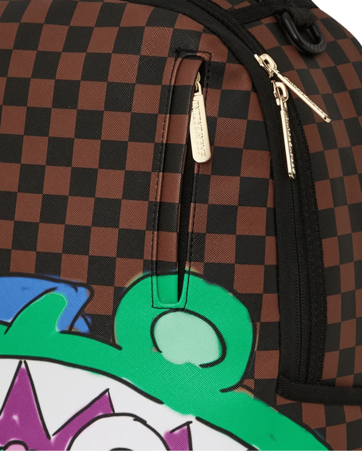 תיק גב יוניסקס מבית SPRAYGROUND, במראה צבעוני ובולט של ירוק וסגול.