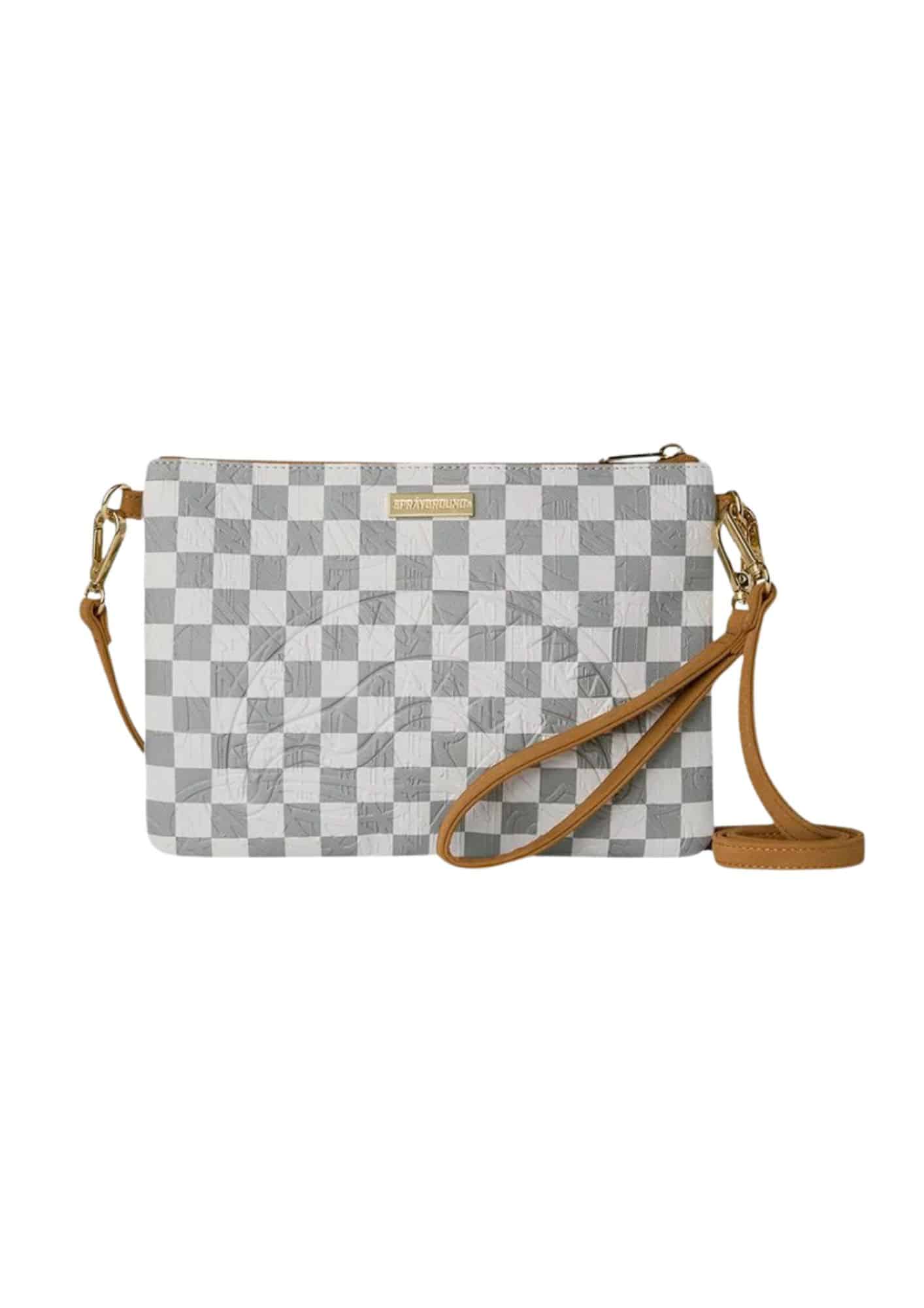 תיק צד בעיצוב אורבני עם דוגמת משבצות בגוון קרם מבית SPRAYGROUND.