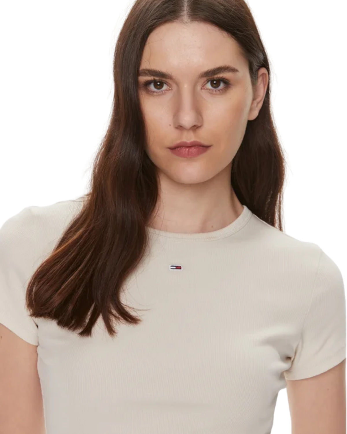 חולצת קז'ואל קצרה לנשים בגוון בז'-שמנת עדין, המשלבת מראה אלגנטי עם נוחות מקסימלית.