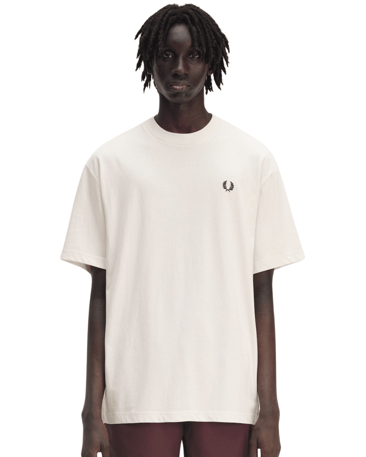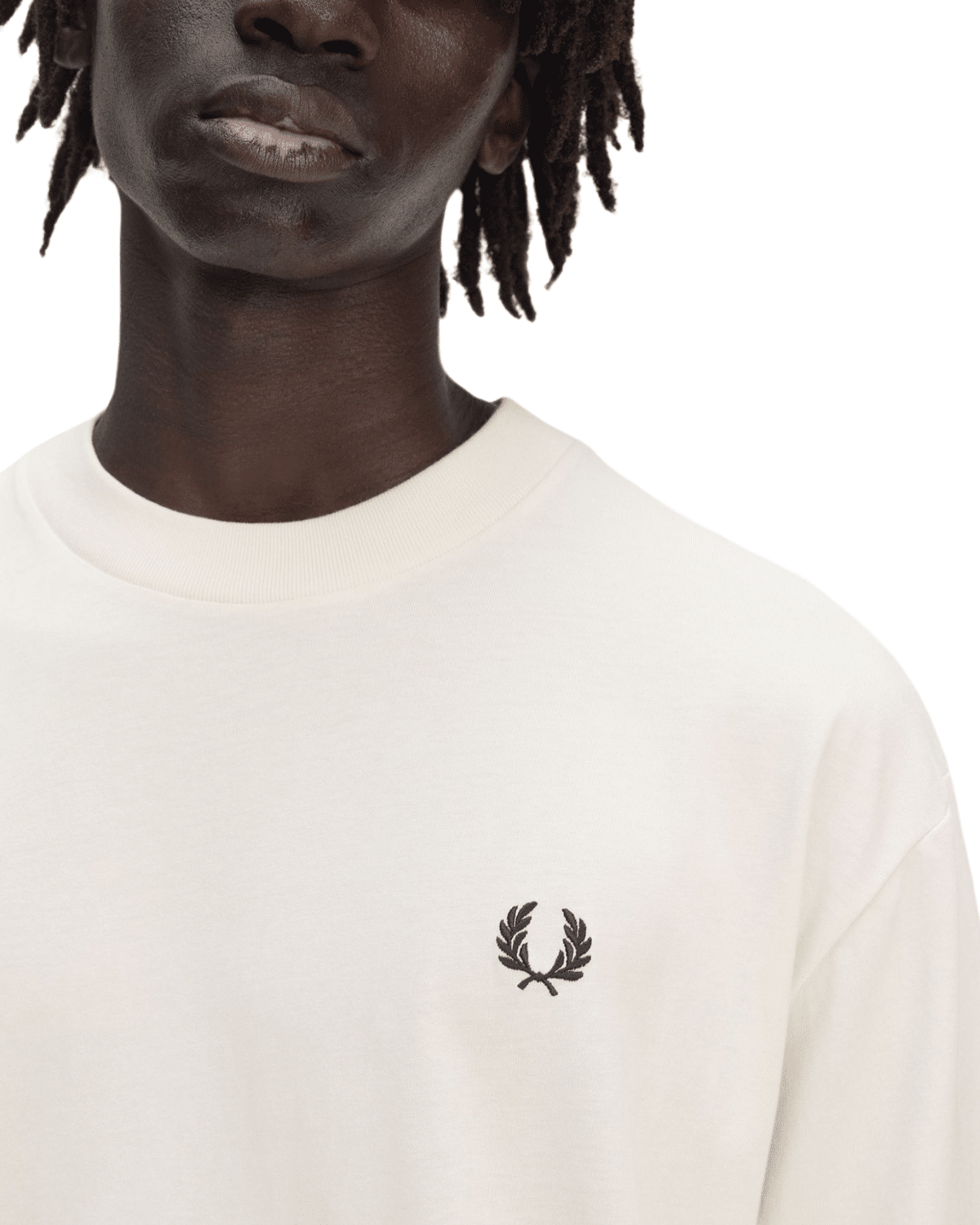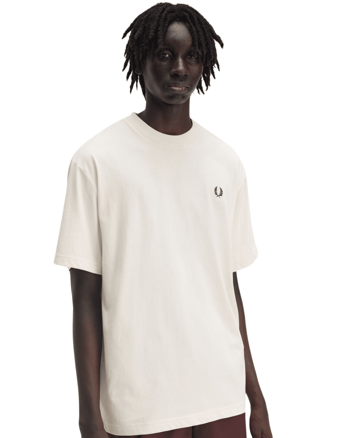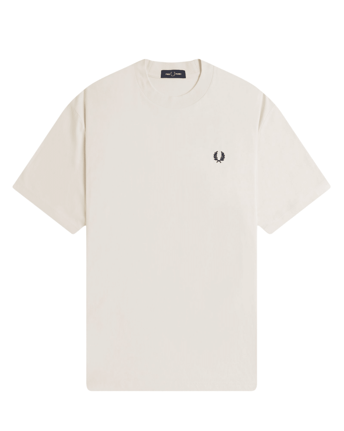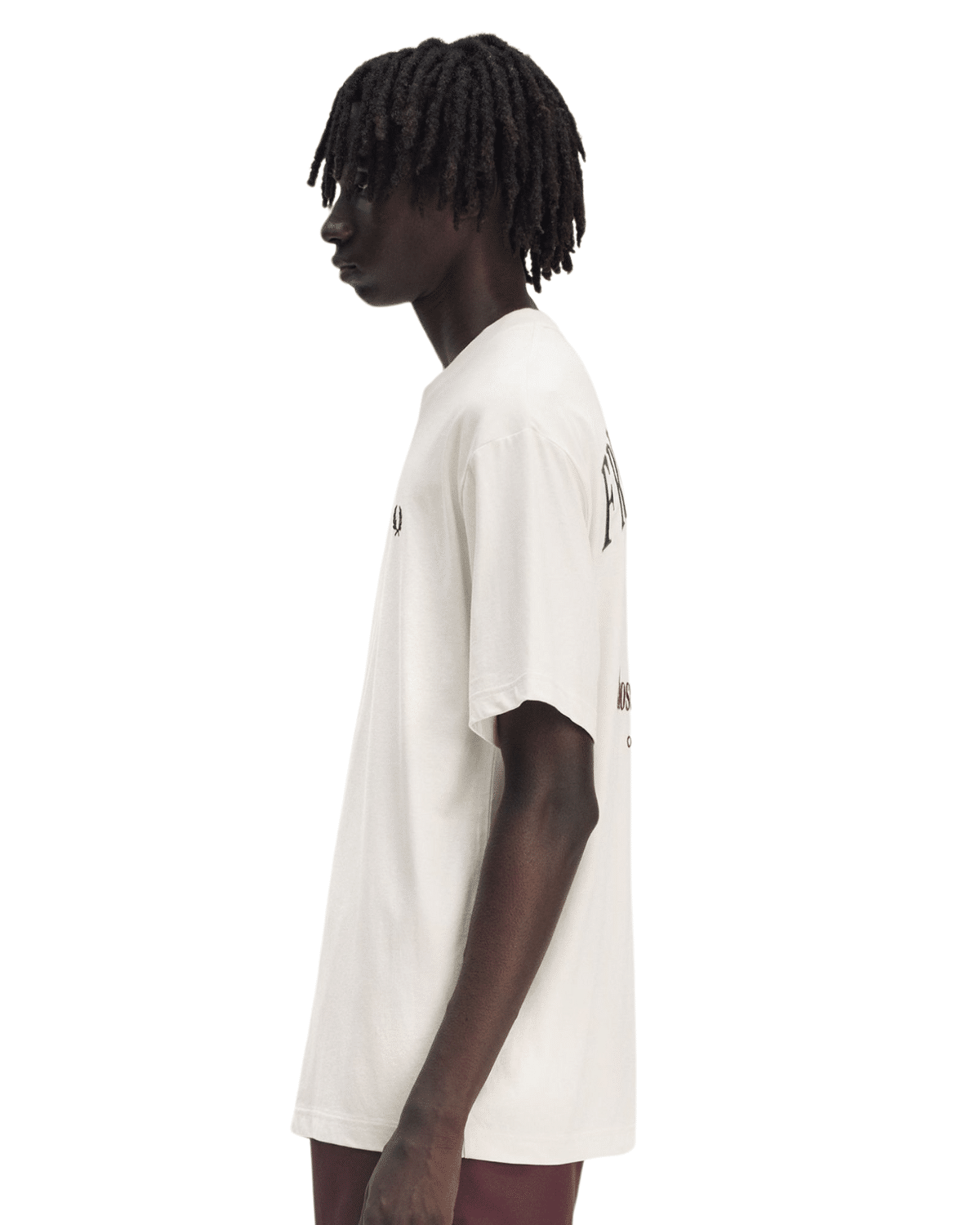 טי-שירט מעוצבת לגברים בגוון בז' טבעי, בעיצוב נקי מלפנים אך עם נוכחות מובהקת בגב – שם מופיעים כיתוב מודפס ולוגו איקוני שמבליטים את הזהות של FRED PERRY בצורה אלגנטית ובטוחה בעצמה.