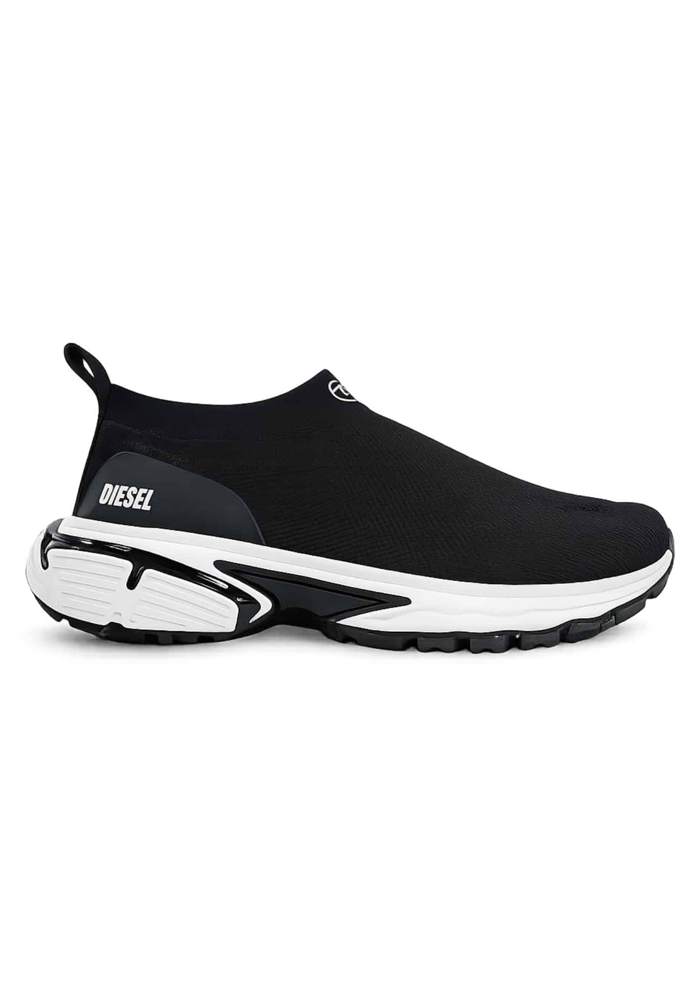 נעל סליפ-און בעיצוב מודרני ונקי בגוון שחור מבית DIESEL עם מבנה אלסטי ללא שרוכים לנעילה קלה ונוחה.