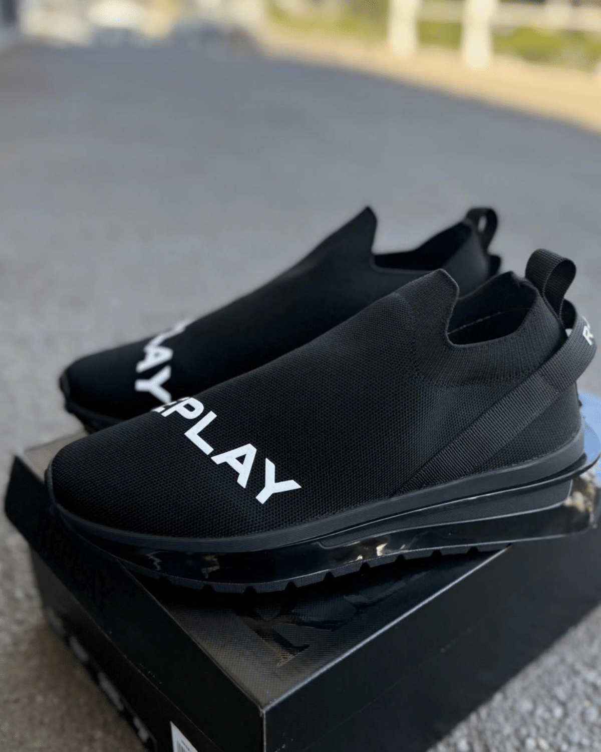 גפה מבד טקסטיל גמיש ונושם עם גימור רשת מודרני, לוגו REPLAY בולט בלבן על גב החלק העליון של הנעל, וסוליה שחורה קלה בעלת בלימת זעזועים מעולה.