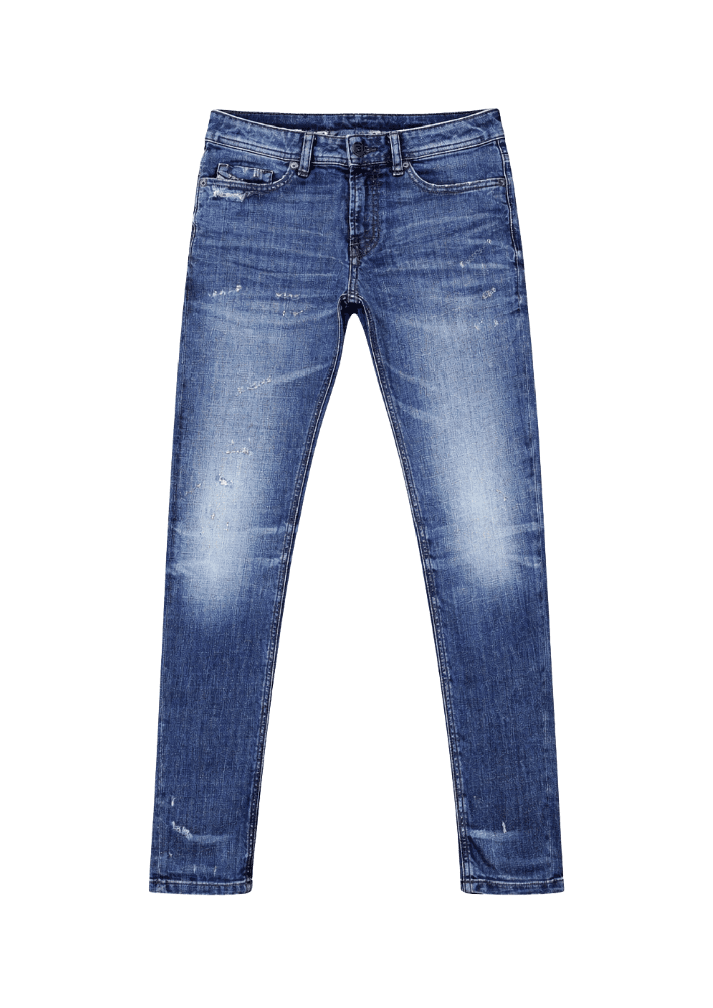 הדגם כולל שטיפה כחולה עם אפקטים של שחיקה ושפשופים עדינים למראה אורבני מחוספס ועדכני.