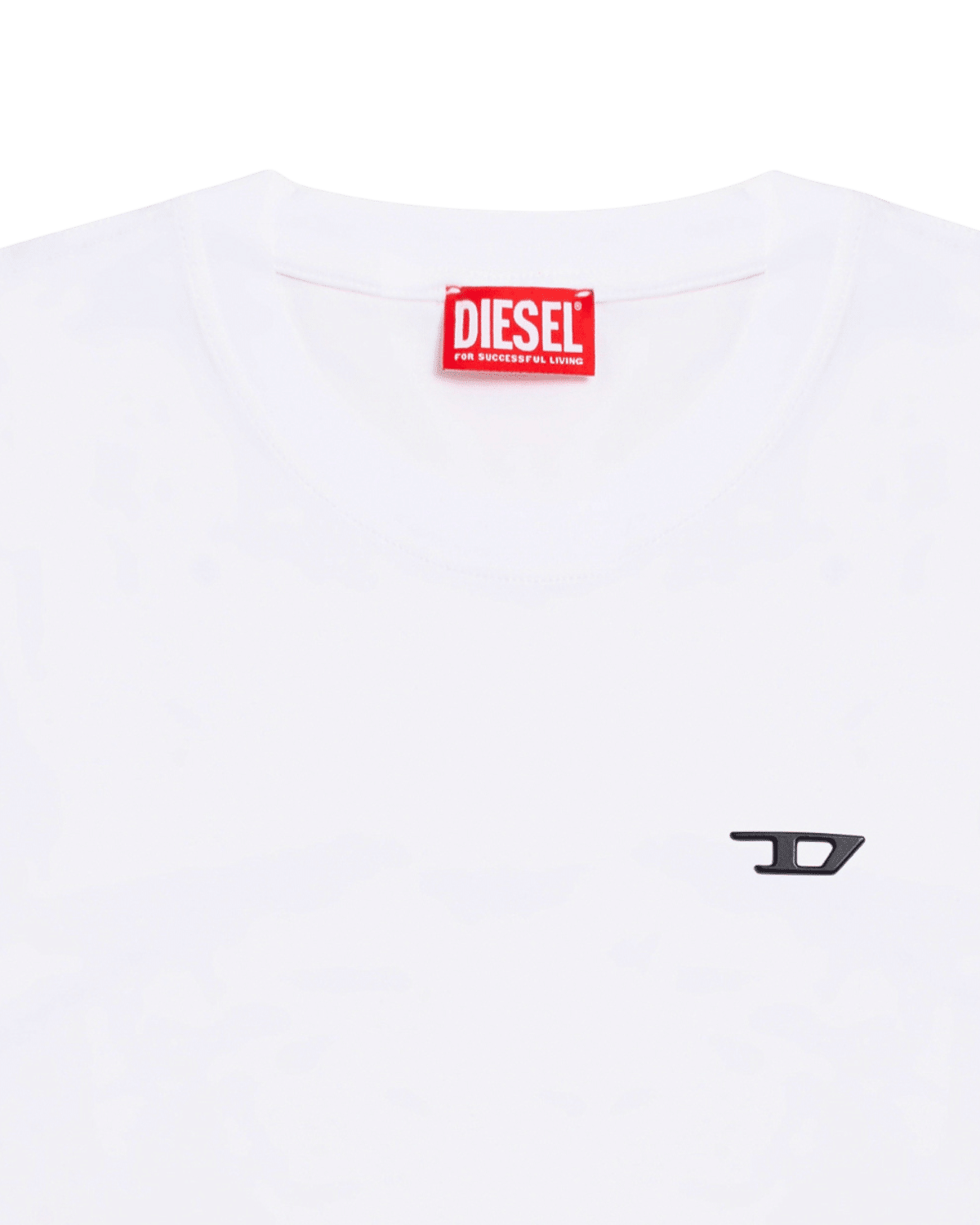 חולצת טי קצרה בצבע לבן עם לוחית לוגו D קטנטנה ממתכת בצד החזה